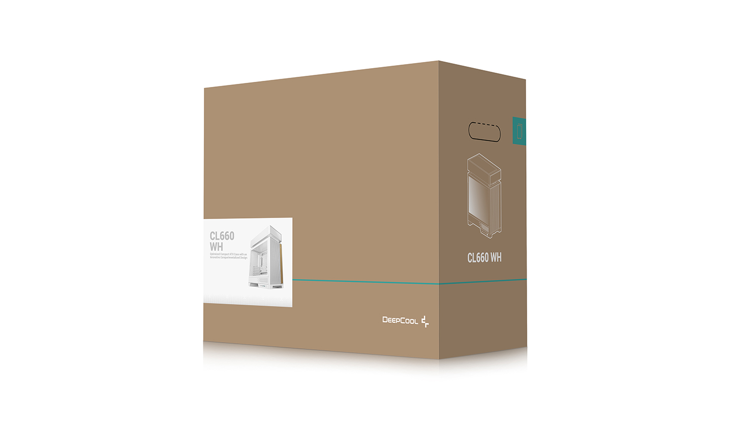 CL660 WH na nowo definiuje projekt obudowy na erę chłodzenia cieczą. Dzięki fizycznemu rozdzieleniu stref termicznych i ścieżek przepływu powietrza, zapobiega gromadzeniu się ciepła i wzajemnym interferencjom, których nie da się uniknąć w konwencjonalnych układach. Zawiera również dwa dolne wentylatory z odwróconymi łopatkami, tworząc zestaw, który łączy wydajność chłodzenia z nowoczesną estetyką.